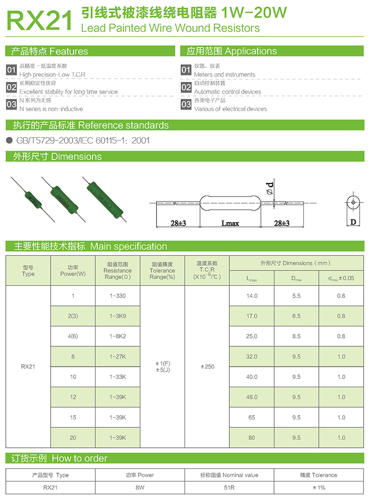 RX21引线式被漆线绕电阻器