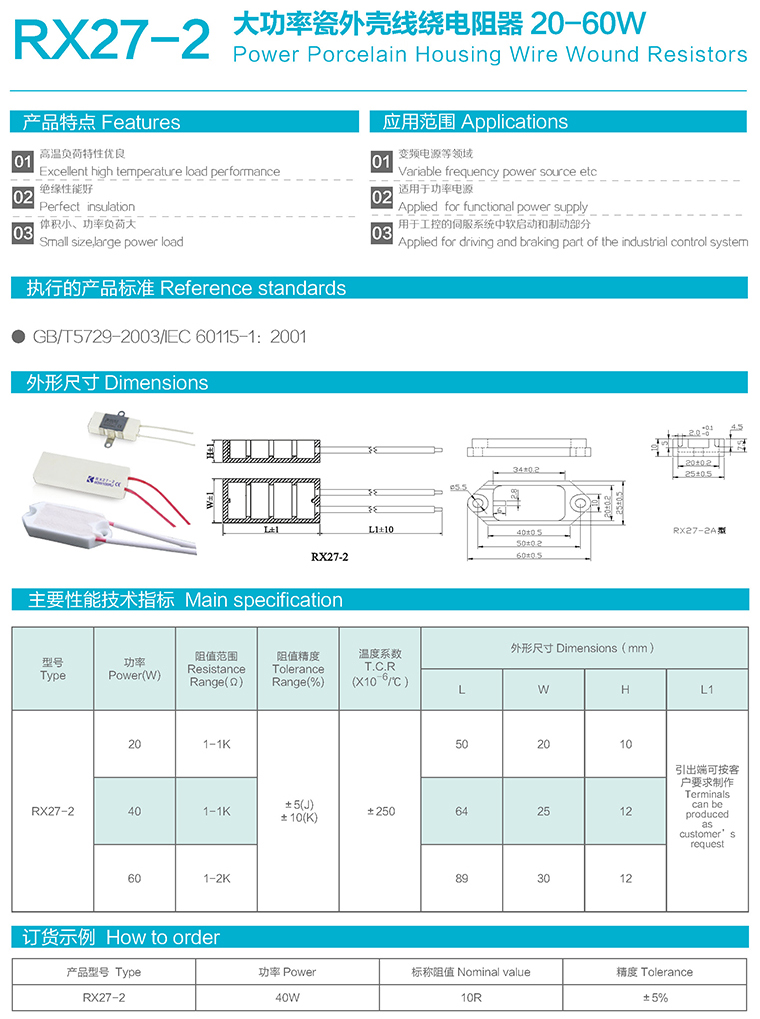 RX27-2型大功率瓷外壳线绕电阻器